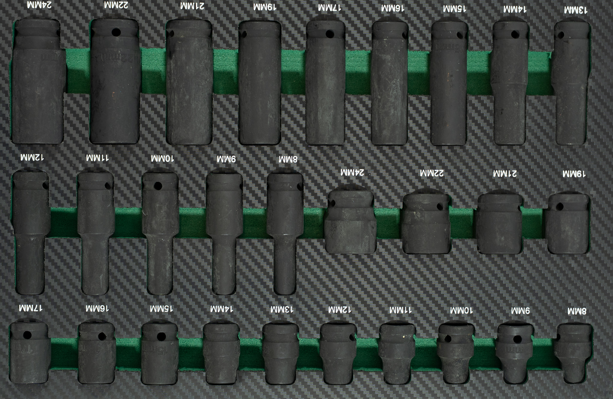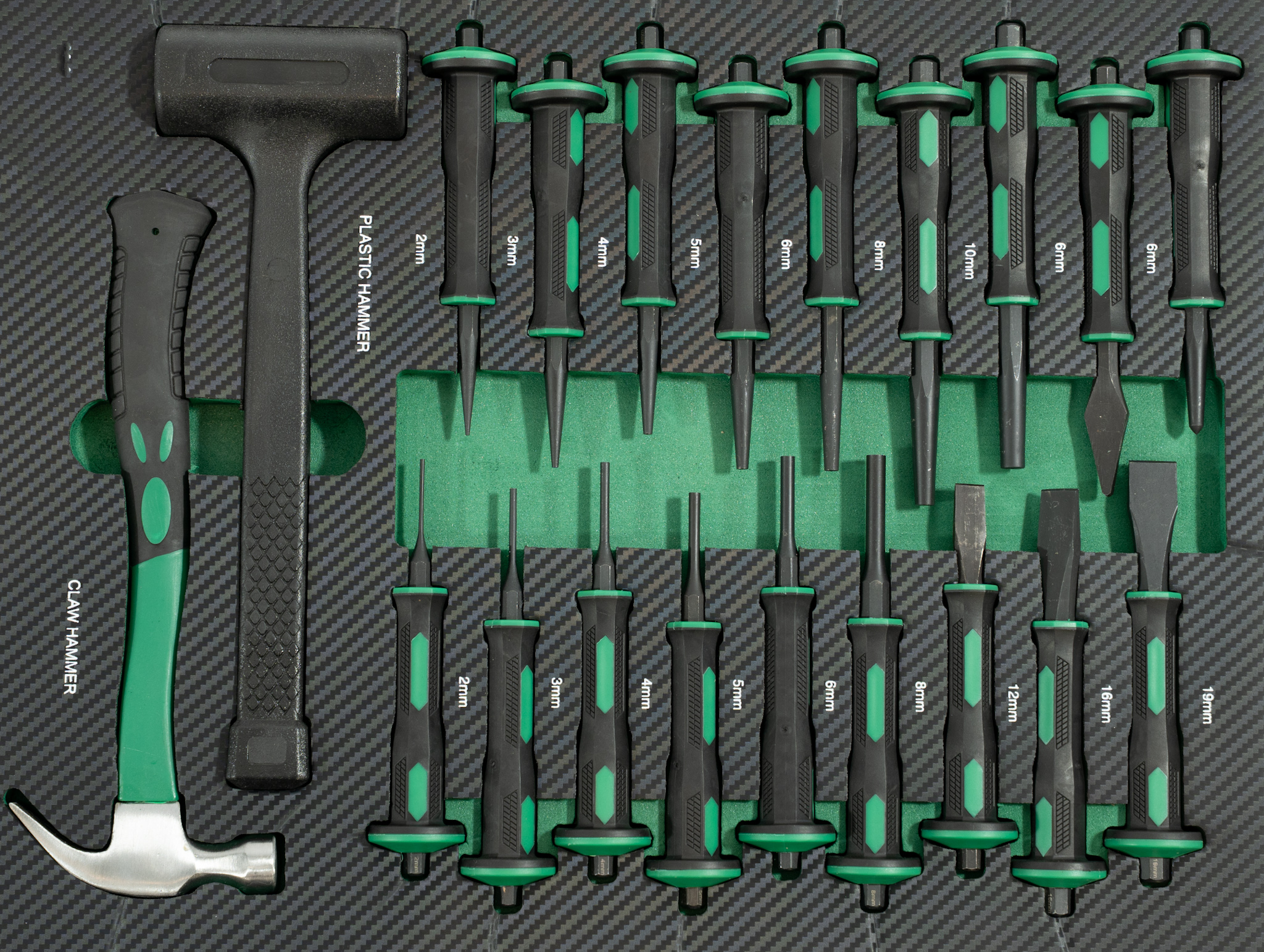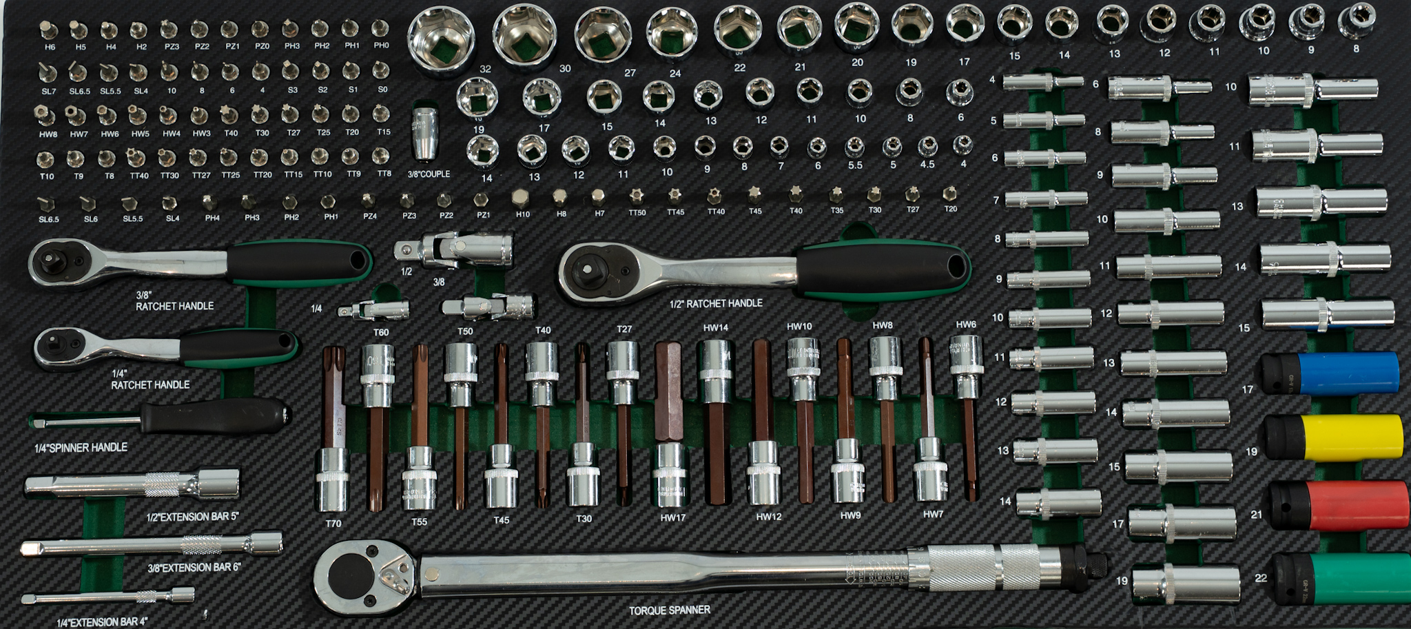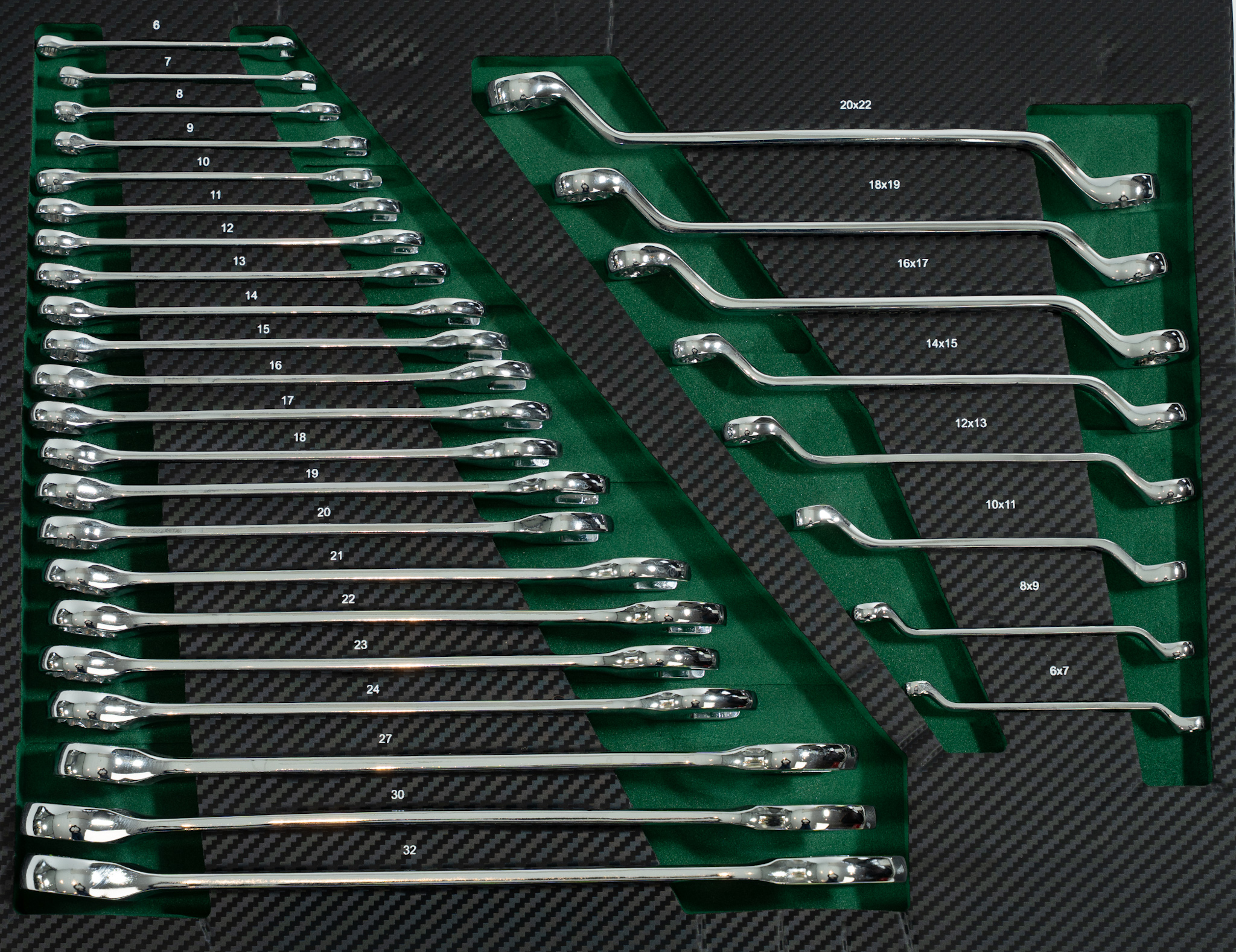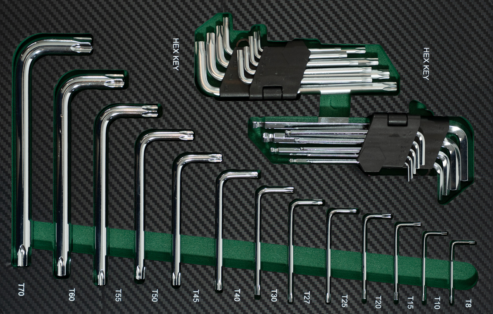 Die Schubladen sind voll ausziehbar (100% Öffnung) und halten dank Schaumeinlagen jedes Werkzeug fest an seinem Platz.