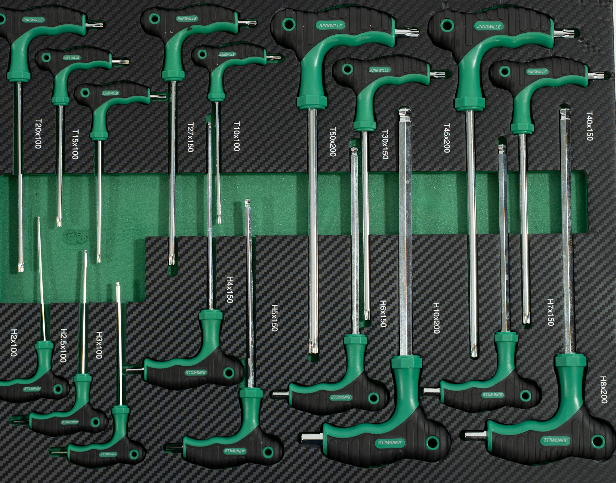 Der Jungwille JD-AGRI ist ein robuster, vielseitiger Werkstattwagen für Profis und ambitionierte Heimwerker. Mit 13 Schubladen mit Schaumeinlagen und 248 Premium-Werkzeugen bleibt alles sicher, geordnet und sofort griffbereit.